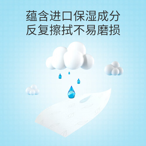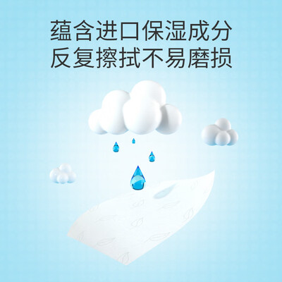 采用水刺工艺和无纺布材质,具有温柔的触感和较好的擦拭清洁效果,含有天然植物萃取的护肤成分,对宝宝肌肤更温和。