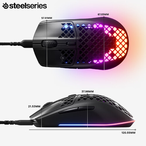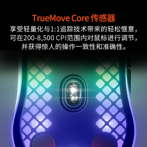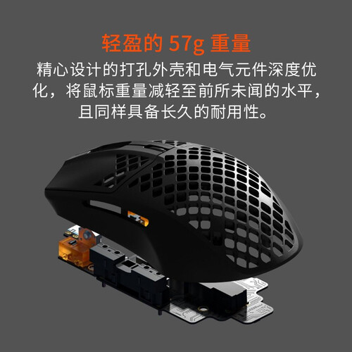 采用轻量化的造型设计,57克重量,携带更加方便;背壳采用镂空设计,散热效果更出色;对称式设计,经久又耐看。