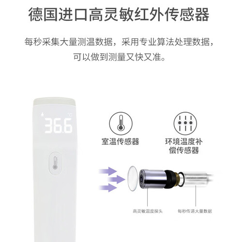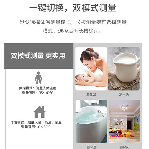 体温计搭载的LED背光大屏显示,即使在黑暗环境下,也能够清晰显示数据。无接触式测量的设计,让你使用时更安心。