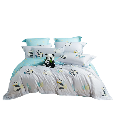 一款可爱又放心的四件套,熊猫印花图案,可爱又萌趣,满足孩子童心满满的好奇心。运用全棉材质制作,触感细腻顺滑。
