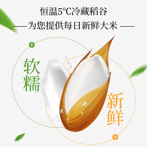 真空包装设计,避免接触空气氧化变质,有效锁鲜,米粒清香。恒温储藏技术,有效保持稻米的活性,口感软糯有嚼劲。