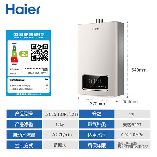 海尔 三管零冷水燃气热水器