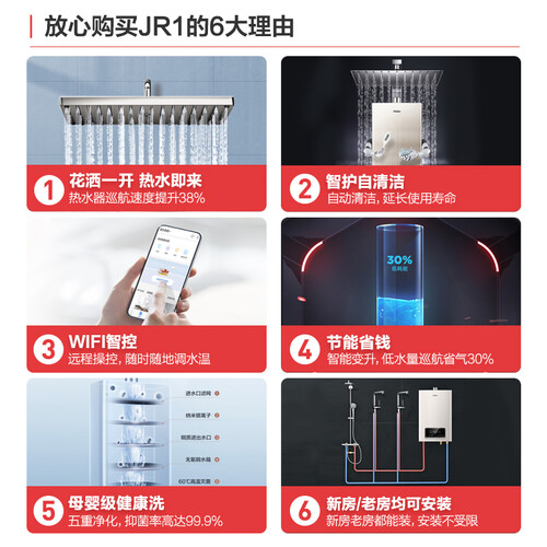 自带单向阀门,使冷热水形成回水管路,热水全屋巡航让使用零等待。内置增压循环泵,低水压也可正常供水,适合高楼层住户使用。