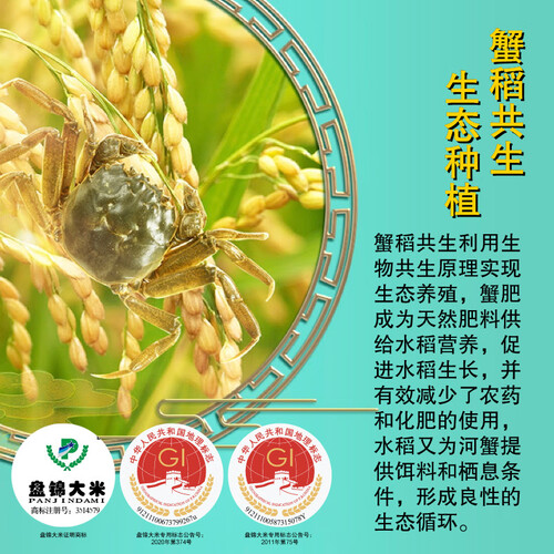 圆粒形米粒,颗粒均匀,洁白透明。蟹稻共生的模式长大,吃着更健康,米饭柔韧绵软,细腻软香,入口甘甜绵长。
