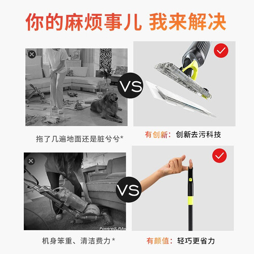 4000Pa大吸力,较强的吸附毛发残渣,增大清洁的能力。一键喷水湿拖功能,强力清除地面上的污渍,清洁不费力。