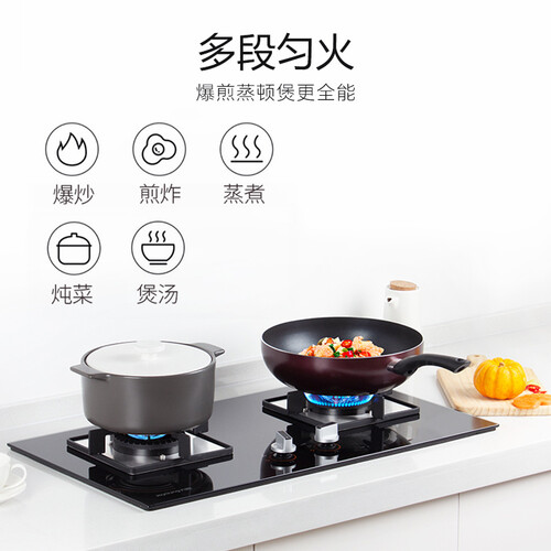 配备了方形锅架,增加了防滑性和稳定性,降低烹饪风险。4.8KW大火力,爆炒更加过瘾,火力稳定,加热更均匀。
