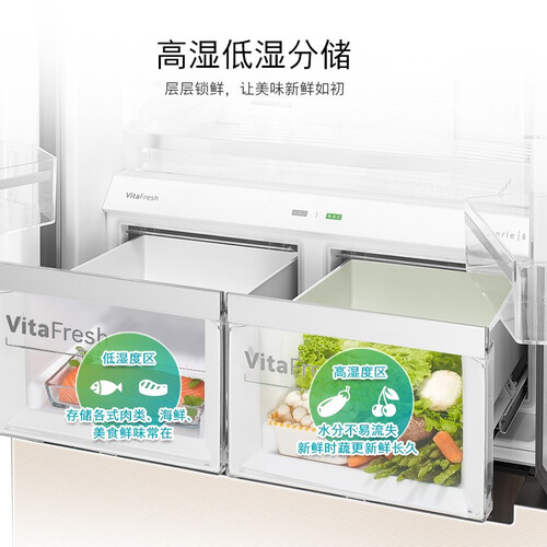 冷藏室内设铂金净味系统,自动吸附难闻异味,缔造健康储鲜环境。拥有高湿低湿存储空间,食材新鲜如初,没有变质现象。