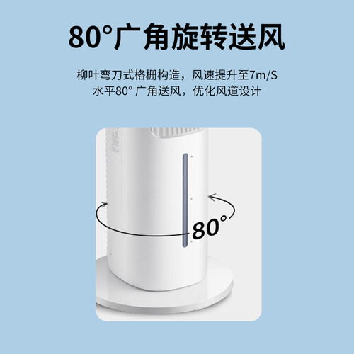 80度广角的清凉送风,采用了高精度的风道设计,保证塔扇达到370立方米每小时的大风量,启动的时候可以充分感受到清凉。