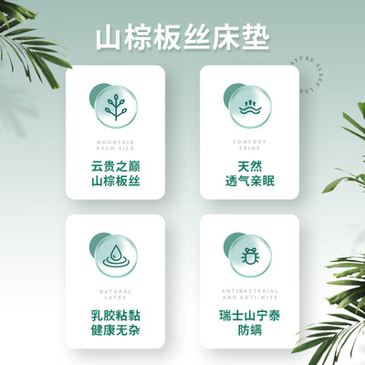 选用高原山棕丝,有良好的弹韧性。天然乳胶黏合剂,无异味,降低健康风险。轻质絮柔软层,提升床垫舒适度,睡眠更安心。