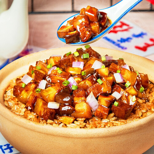 精心熬制的浓稠卤汁,咸甜交织不寡淡,搭配真实的卤肉更下饭。选用来自东北的长粒香米,保留米饭软糯的口感。