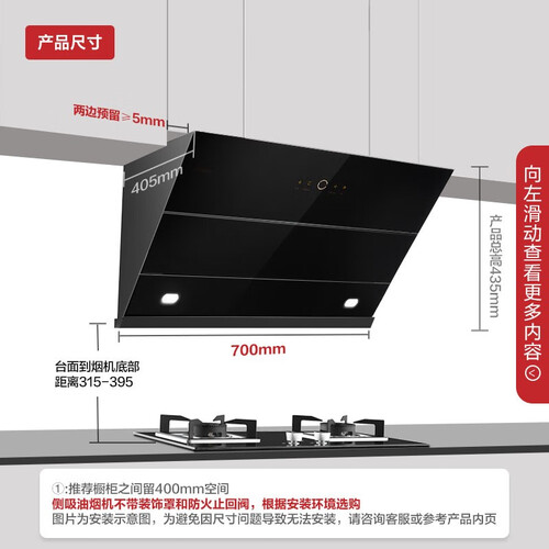 内置强劲电机,配合螺旋风道,带来更大的吸排效果。55分贝低噪音运行科技,烹饪不再受打扰,家中更静谧。