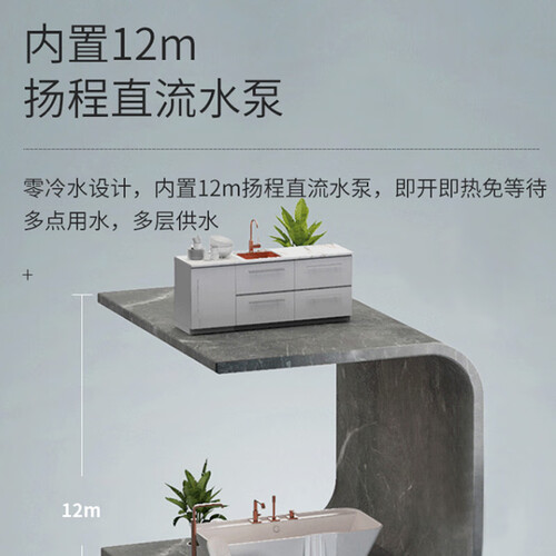 内置12m扬程直流水泵,实现多点用水,全家同时用水也依旧保持畅快出水。安装灵活,新老房子都可以放心使用。