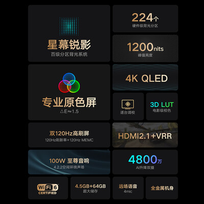 双120Hz高刷屏,高速画面不撕裂、不卡顿,故事画面丝滑流畅;具有Gamma曲线校正,色温调节,可适应多场景,观影更舒适