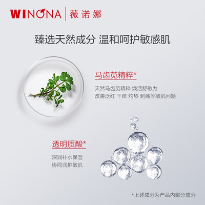 添加透明质酸精粹,可以循环补水锁水,让肌肤能够时刻保持水润。添加天然马齿笕成分,可以增强肌肤耐受性,让肌肤不容易敏感。