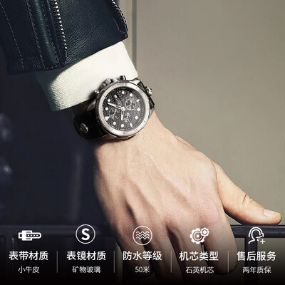 选用进口石英机芯,性能稳定,走时更精准。采用黑色小牛皮针扣表带,质地亲肤且透气,不易产生勒痕,给您带来舒适的佩戴体验。