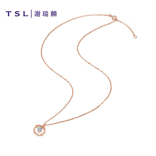 造型是采用花环镶钻的设计,中间有一颗主钻,花环上镶嵌着四颗小钻。佩戴起来令人显得十分的优雅温柔。