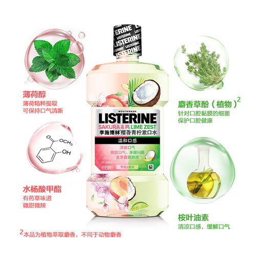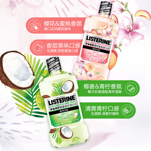 创新采用大众接受的樱花和椰子香味,入口清洁相对温和,漱完口后,嘴巴会留有一阵清香和甜味。