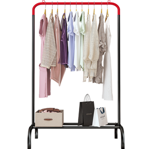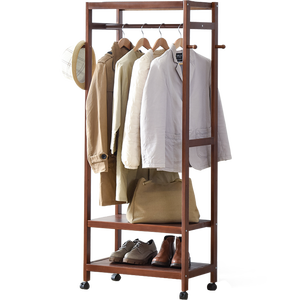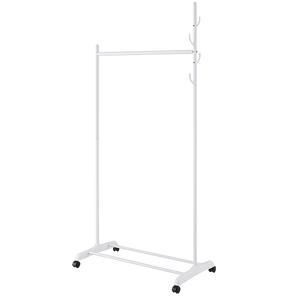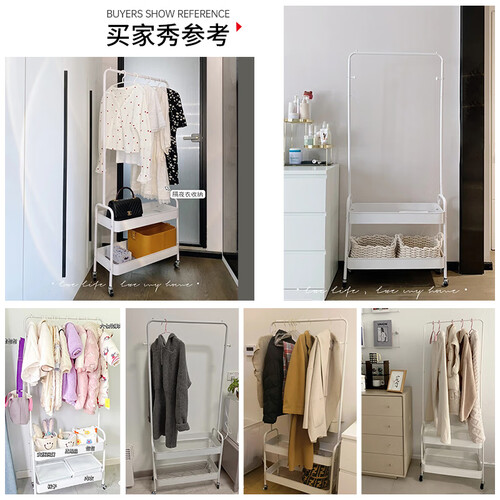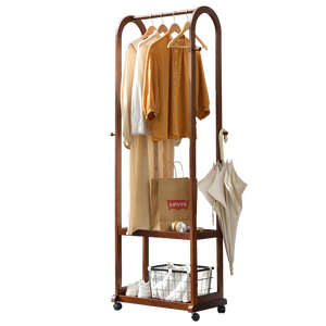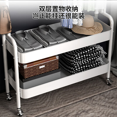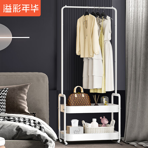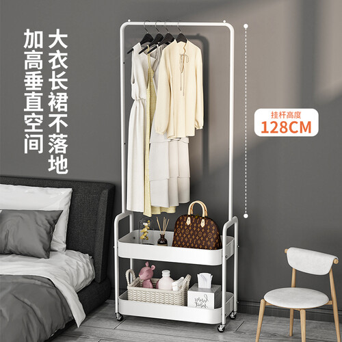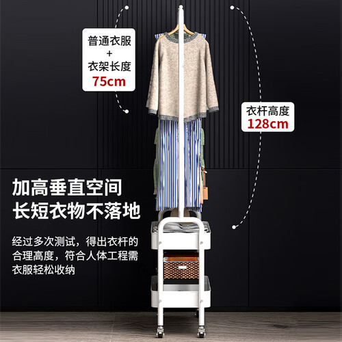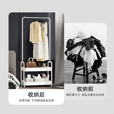 衣架底部带有储物层,挂收一体使用起来省空间又方便。配备有带刹车的万向滑轮,移动方便的同时放置也平稳。