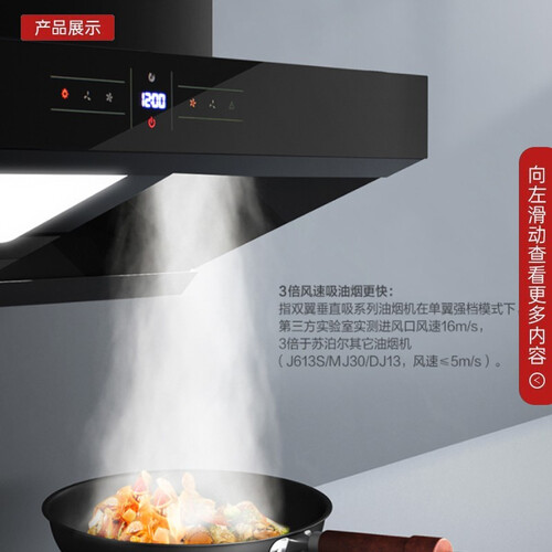 采用垂直吸油烟方式,能快速的吸走油烟,避免烟气外跑。智旋干洗,自动清洗烟机内部,保持持久大吸力。