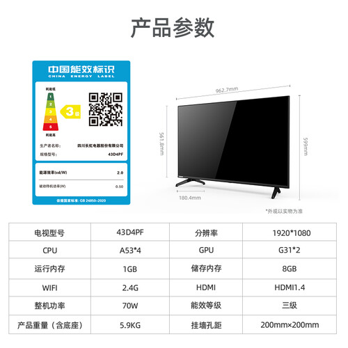 长虹 全面屏工艺电视