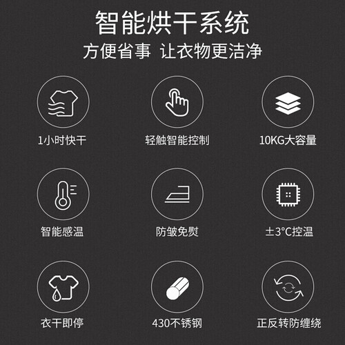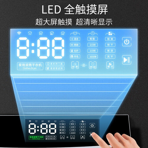 设计led全触摸屏,显示清晰,可直观感知烘干全过程。配置智能感温感湿系统,实现智能烘干,衣干即停更方便。