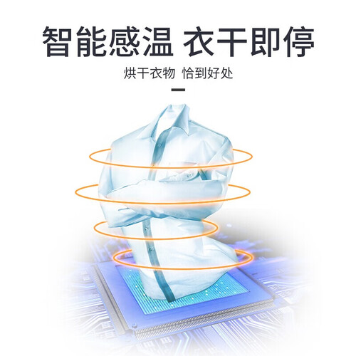 智能自动烘干,衣干即停,烘干后的衣物平整有型,防皱免熨烫。双向旋转,结合大直径滚筒,有效防止衣物缠绕。