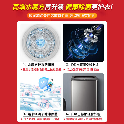 特有的水魔方防缠绕技术,通过三种水流循环洗涤,深入清洁衣物的同时,避免打结缠绕,衣物更平整。具备一键桶自洁功能,日常清洁打理简单。