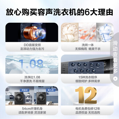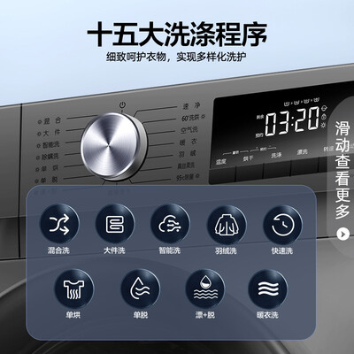 拥有15大洗涤方式,根据需求调节洗涤程序,操作起来更加简单。纤薄机身,随意摆放,让家里释放更多空间。
