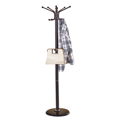 款式时尚的衣帽架,顶部设计十个环形挂钩,不仅能够轻松旋转拿取衣物,而且视觉效果更好,放置在家中也能起到装饰作用。