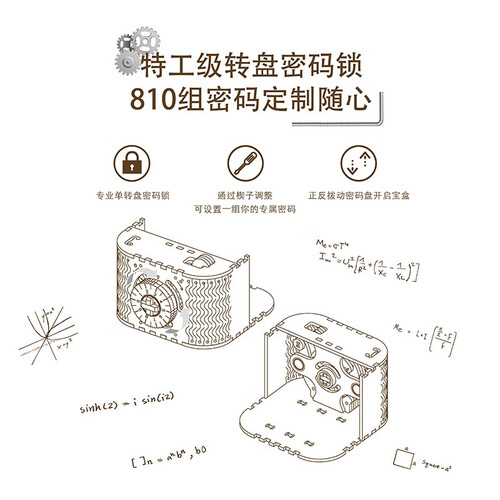 迷你复刻密码盒,彰显复合时尚的魅力,可以珍藏浪漫,搭配特工级的转盘密码锁设计,正反旋转即可开启密码,非常方便。