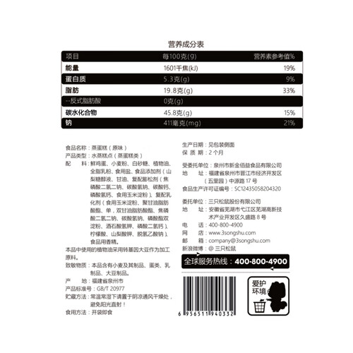 这款蒸蛋糕以醇香牛奶、优质小麦粉、新鲜鸡蛋等为原料,用蒸工艺制作而成,软嫩香甜。