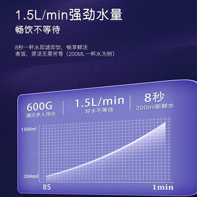 1.5L/min强劲水量,出水速度更快,多口之家、用水高峰期也能轻松驾驭。智能APP交互,一键开启便捷水生活,使用安心。