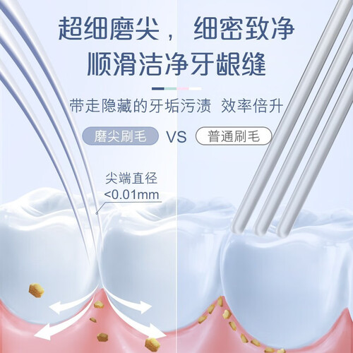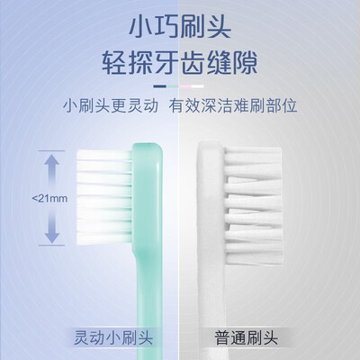 灵动的小刷头可深入口腔各个部位,避免清洁盲区,长效守护口腔健康;扁平防滑设计更显贴心,拿握舒适不易滑,助你省力洁牙。