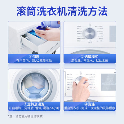 能够强力瓦解洗衣机内的污渍,不残留,不用二次清洁,更加省心方便。同时液态设计,使用时不用溶解。