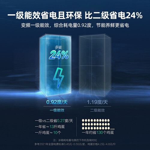 一级能效双变频设计,日常使用耗电量低,长久开启也不怕电费高昂。设有变温区,可根据存储的食材选择适宜的模式,细致守护食材营养。