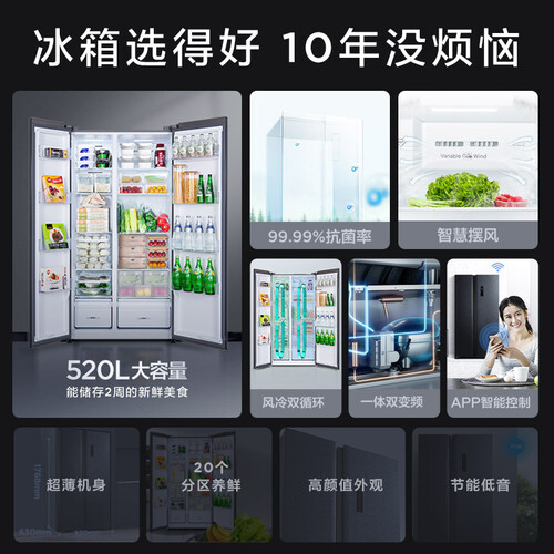 冷藏室风道可释放丰富负离子,有效抑制细菌滋生,提升冰箱的保鲜效果,蔬果长久新鲜。左右双温区独立循环送风,温度均匀且有效避免串味。