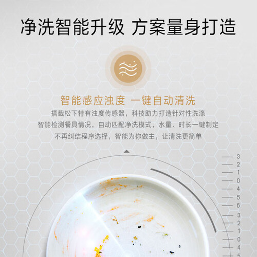 搭载浊度传感器,智能感应浊度,一键开启省心省力。多种清洗模式,轻松应对不同餐具,高效清除细菌。