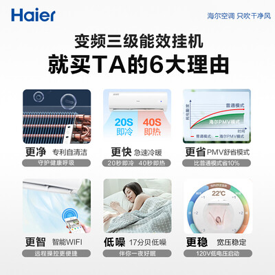 采用PID变频技术,均匀控制环境温度,让身心得以放松,WIFI远程操控,下班路上就能调好家里温度。