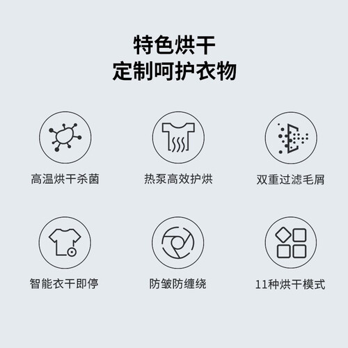 烘干机通过低温热气流快速穿透衣物,全方面深层去除细菌、尘螨,让家人远离过敏烦恼。内置高精度感应系统,防止衣物过烘变形。