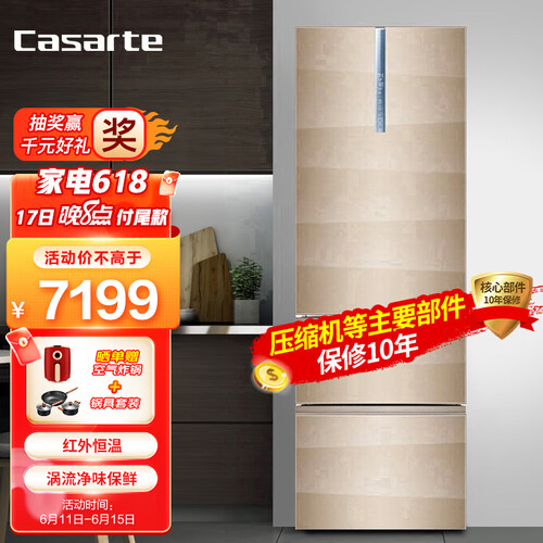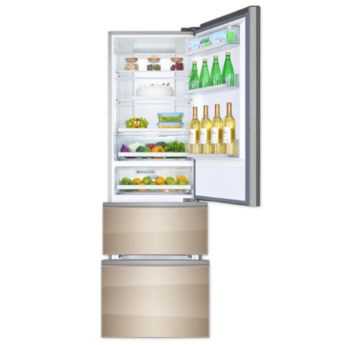 简约小巧的三门冰箱,摆放不占地,小厨房也能放得下。采用双变频技术,制冷快速,35分贝安静运行。
