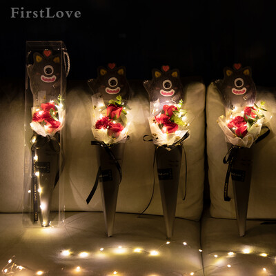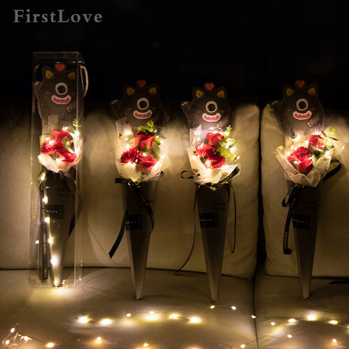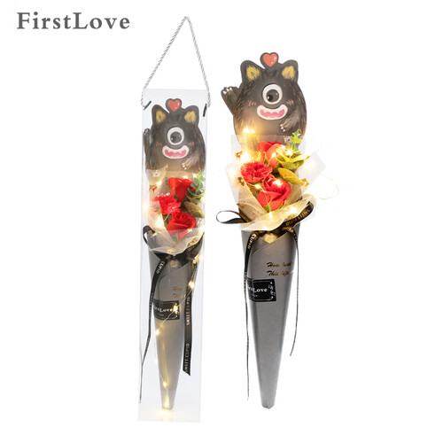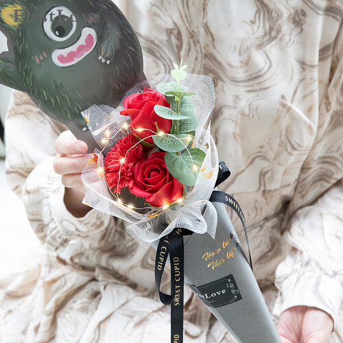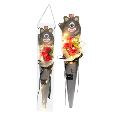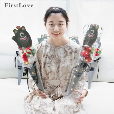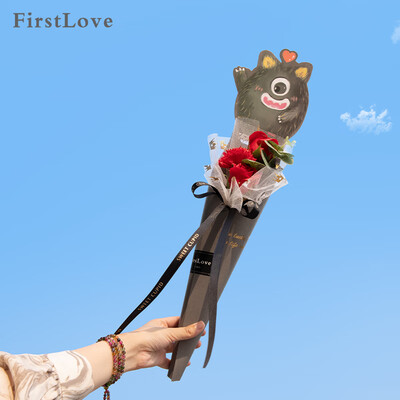 充满萌趣的小怪兽花束,精美可爱,送给另一伴可以让她爱不释手。丝带和包装纸经过烫金工艺加工,可以提升整体的气质。