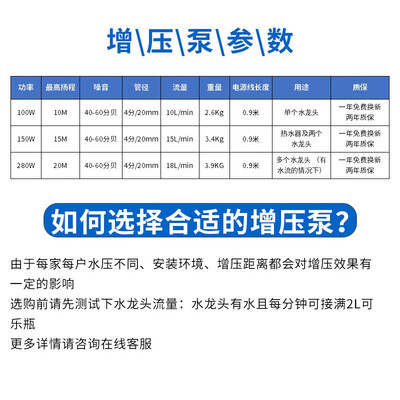 适合家用的全自动增压泵,可为自来水增压,水流不再忽大忽小。搭配不锈钢机身,耐腐蚀抗酸碱,无生锈隐患。