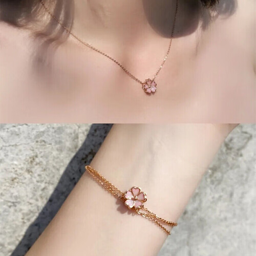 浪漫的樱花吊坠,粉粉的樱花看上去甜美梦幻,衬托出温婉的女性气质。玫瑰金K金材质,光泽亮丽显皮肤白,戴上闪闪发光。