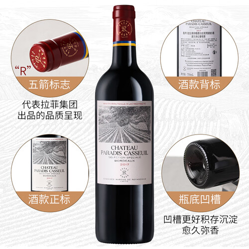 精选优质的赤霞珠、梅洛优质葡萄品质,酒体呈现浓郁的深紫色,散发出优雅香气。瓶口使用橡木塞,有效保留酒的香气,更加醇厚。