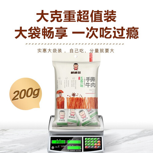 采用手撕的造型设计,食用起来十分的方便,具有香辣软软的嚼头带来别致的口感。结合小包装设计,食用和携带都方便。