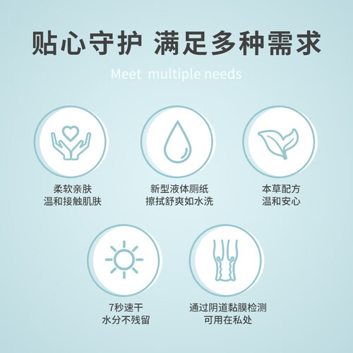 采用弱酸性配方,温和亲肤无刺激感,母婴人群也能放心使用。采用可降解材质制作,如厕后可直接丢入马桶,不易堵塞。