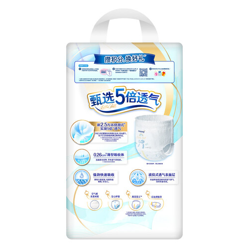 0.26cm薄型吸收体,非常纤薄轻盈,宝宝穿着轻薄自在很舒适;波纹式透气表层能够做到强力吸收,快速导流好安心。