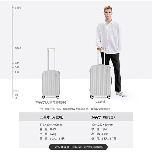 表面采用条纹式设计,造型美观大方,同时增强箱体抗压性能。搭载一体式轮座,增强箱体整体感,高度降低存放更省空间。