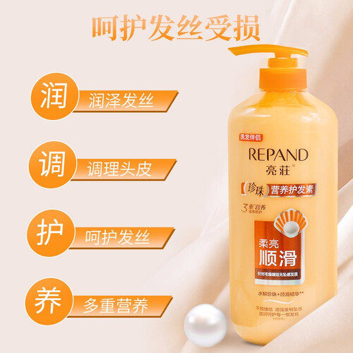 添加水解珍珠成分,可以持续润泽头发,让头发能够保持柔滑亮泽。采用按压泵头,可以节约日常用量,能够延长护发素的使用时间。