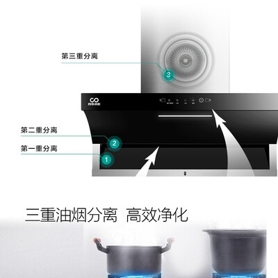 900mm宽域下沉式背吸风口,让拢烟效果更上一层楼,保证厨房的空气环境。红外感应装置,只需要挥动双手就能操作,降低难度。